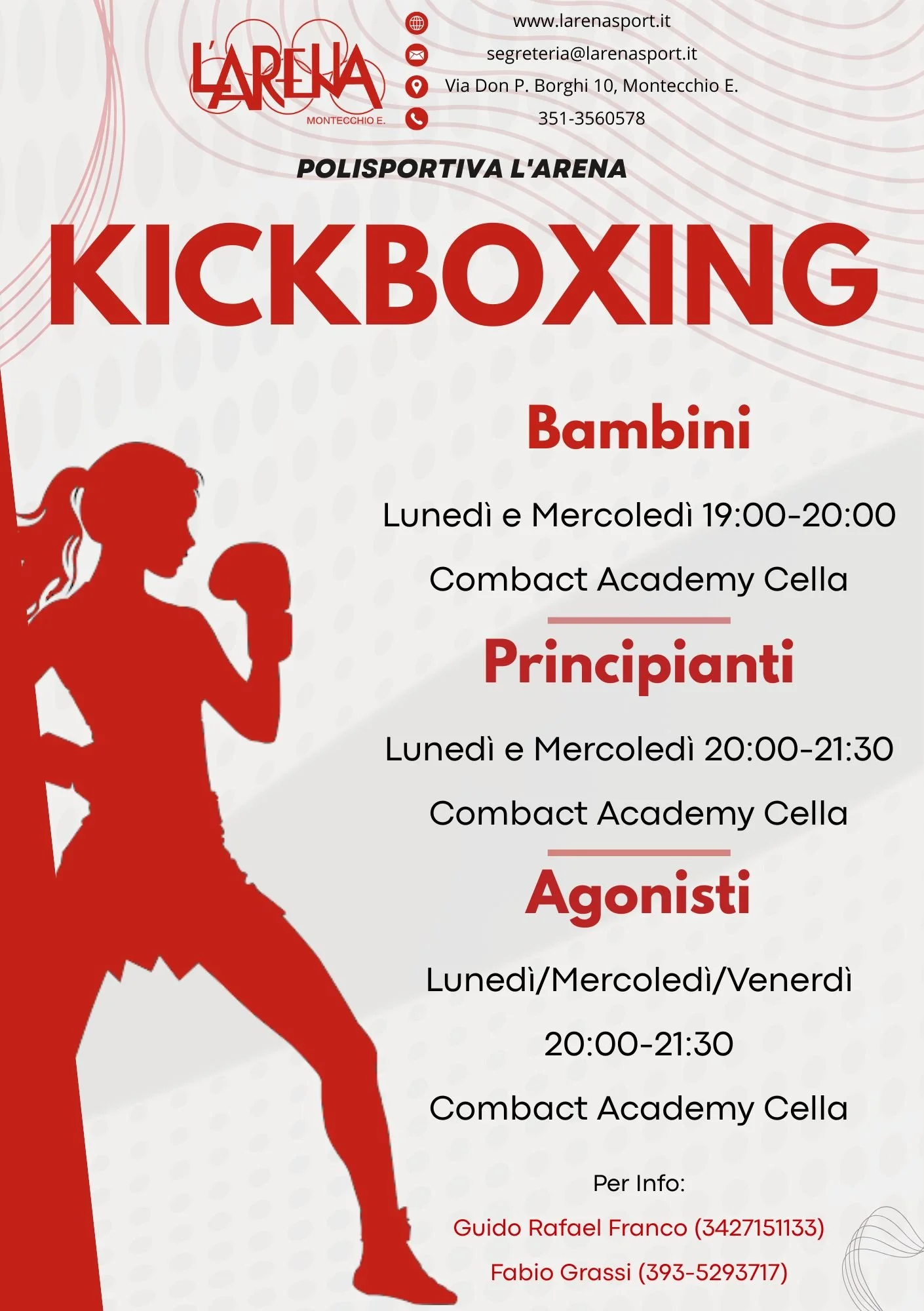 Per qualsiasi informazione aggiuntiva, contatta la Segreteria al 351-3560578